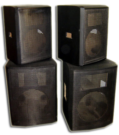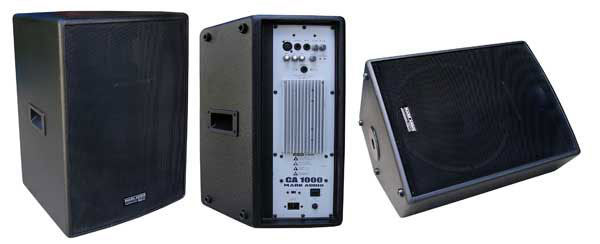Caixas acústicas de 3 vias, grave, médio e agudos, com alto-falantes de 8, 10, 12 e 15". Potencia de acordo com o ambiente.