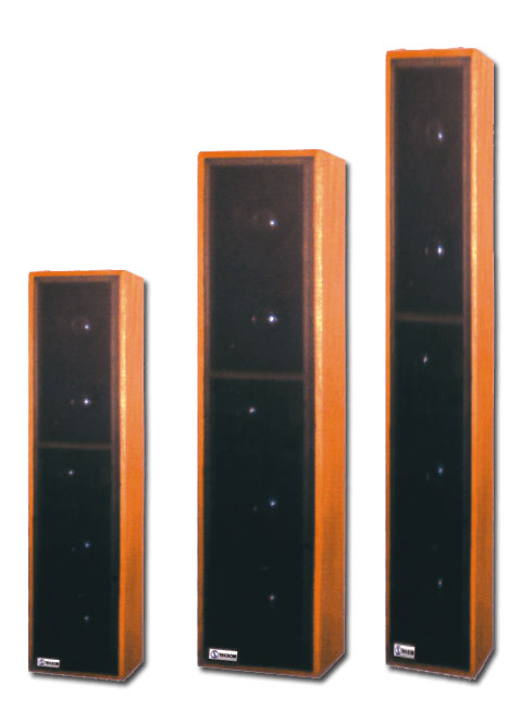 Coluna tipo Line Array com gabinete em alumínio na cor branca ou preta com 08 alto falantes de 3", ângulo de dispersão de 10 graus na vertical e 180 graus na horizontal, total de 200watts.