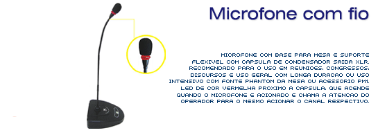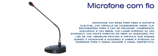 freqüência: 50Hz a 15kHz Excelente para voz em palco e