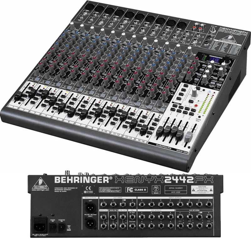 dois canais de saída, entradas auxiliares, saída para gravação,