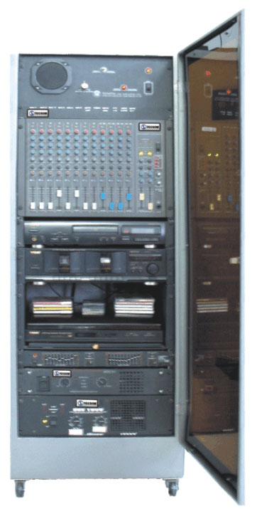 Racks de ferro com porta chaveada e rodízios.